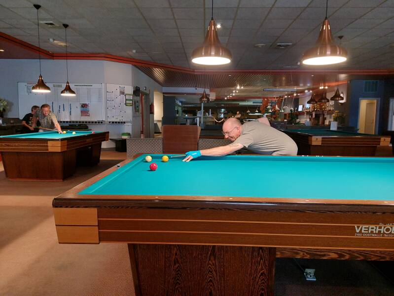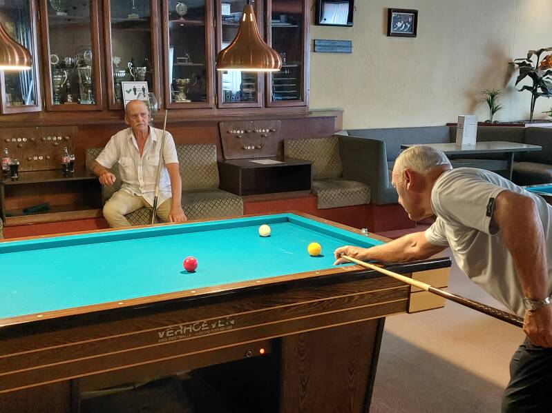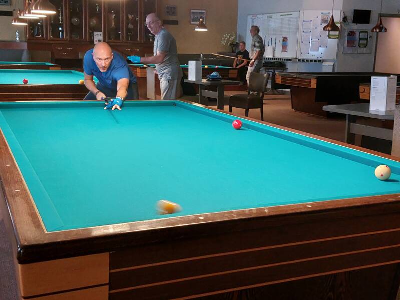 Onze "jongste" telg van de club (volgende maand 97) is weer te been. We wensen Nand nog veel plezier aan een van onze biljart tafels.