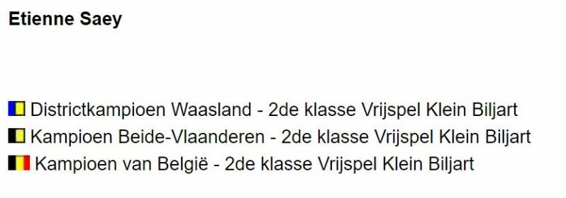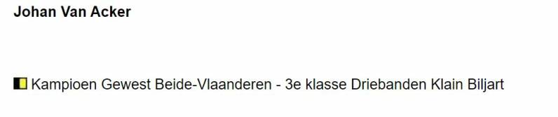 Gewestelijk Kampioen - 2e kl drieband KB (34 pt) met promotie naar 1e kl (42 pt)