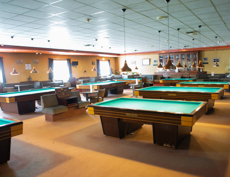 In de sfeervolle zaal staan 14 snooker- en 9 caramboletafels, 1 American Pool en 4 Golfbiljarts.